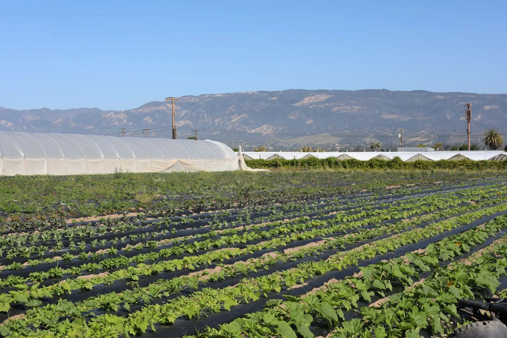We met Andrew, Eric, and Jesus at their seeding operation in Santa Barbara proper. It's part of a smaller plot, where they’re growing market strawberries, hedges of passionfruit, along with early cucumbers and tomatoes. That’s one of three plots in the area, supplemented by another six in Solvang for a total of 240 acres – an impressive amount of growth since their start in 2015. With their long soil beds framed by the silhouette of mountains and scattered palm trees reaching for the sun, theirs is an idyllic example of Southern California farming. But the beautiful locale doesn’t mean it’s easy!