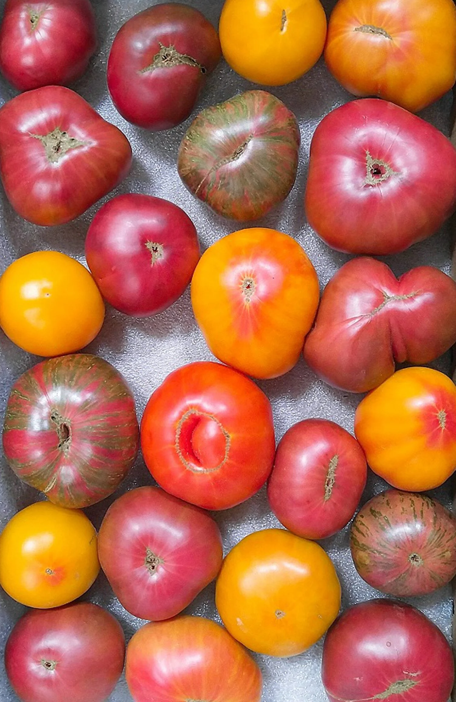 New! Banana Peppers from Sunrise (Buellton), a mild, tangy pepper. Often used for pickling or stuffing. Rounding out the category are Anaheim, Jalapeno, Padron, Poblano and Shishito. NEW! Tomatero open pint Shishito and Padron Peppers will go all summer.