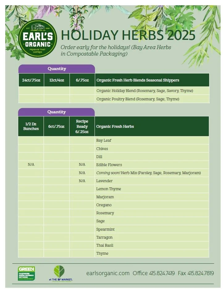 Earl’s Thanksgiving checklist will help your holiday planning go smoothly. Order pre-cuts and herbs early to secure volume. Create an eye catching waterfall display with holiday staples-sweet potatoes, potatoes, onions and hard squash. Mushrooms are historically tight at this time of year. Now is a great time to try some new and exciting varieties.